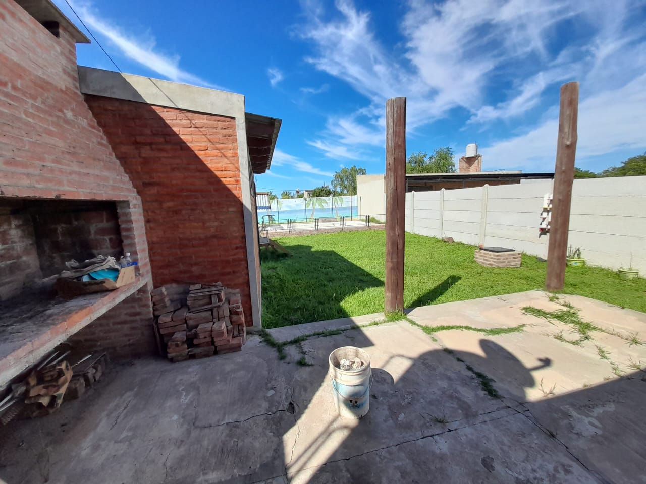El lote esta completamente cercado y mide 10 x 30mts. La propiedad esta conformada de cocina/comedor, dormitorio y baño. Galería semi cubierta, parrillero y cuarto de guardado. Pileta de fibra marca IGUI de 5 x 2.50 mts aprox. con todos sus accesorios. La perforación de agua actualmente no funciona.